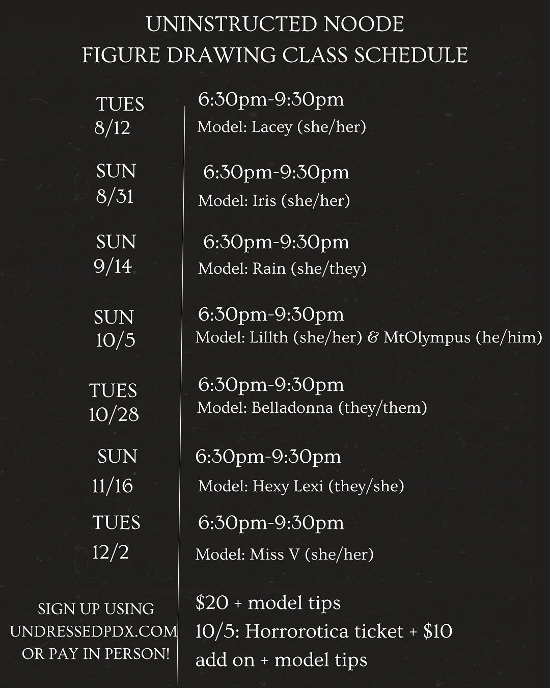 Undressed PDX currently provides pop up art classes, pole classes and art events in the Portland, Oregon and Vancouver, WA area!